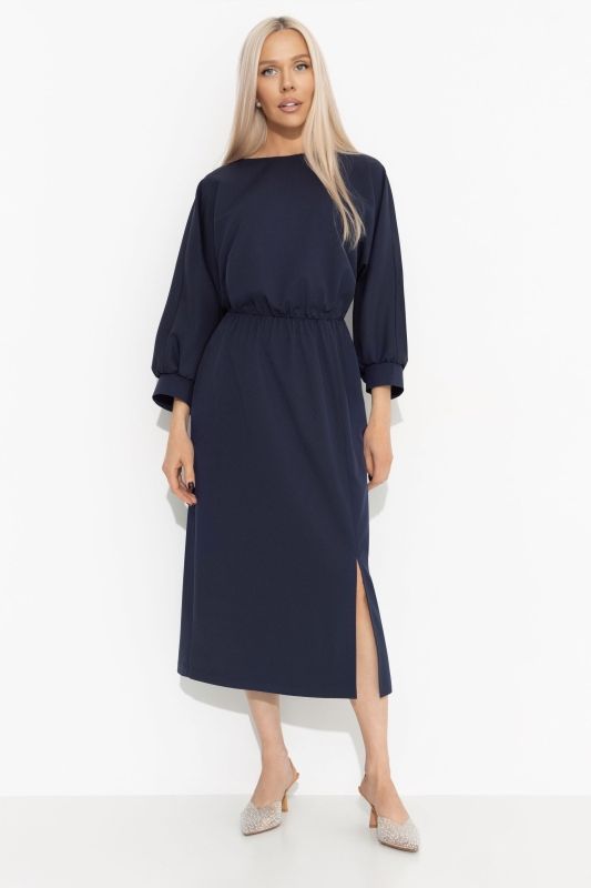 Платье синее с эффектным разрезом по переду