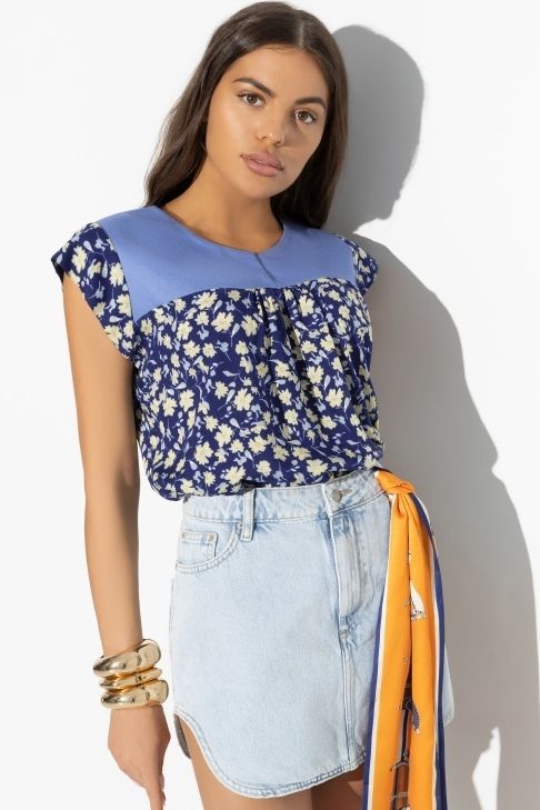 Туника летняя синего цвета с рукавами-крылышки
