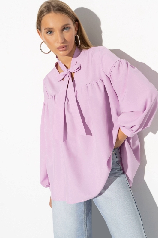 Блузка розовая с завязками на бант