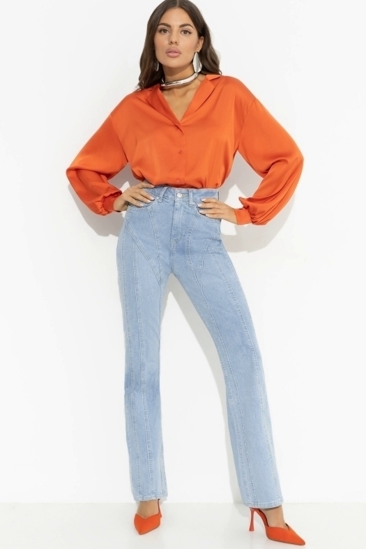 Джинсы голубые прямые от бренда Charutti, выполнены из джинсы. Классическая застёжка гульфик и пуговицы. По бокам и спинке функциональные карманы. Шлёвки под ремень. Идеальный выбор для городских модниц.