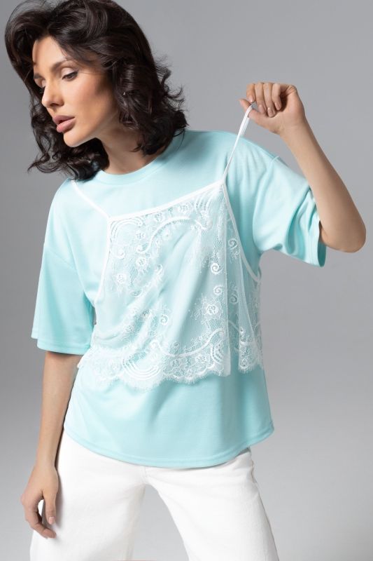 Футболка мятного цвета со съёмным топом