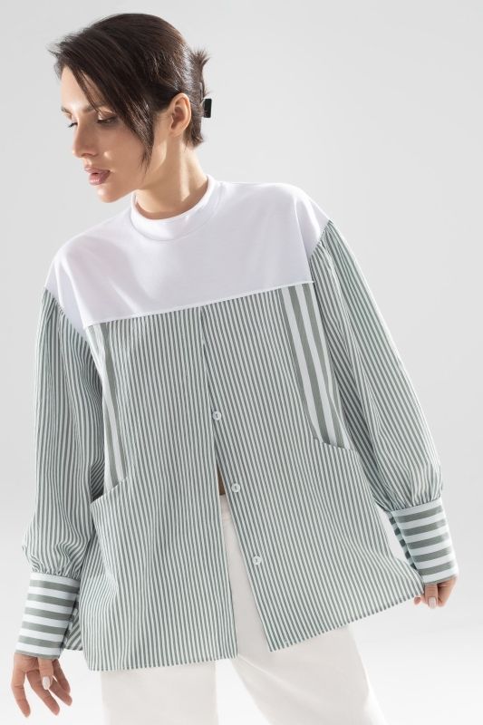 Блузка мятная с воротником-стойкой