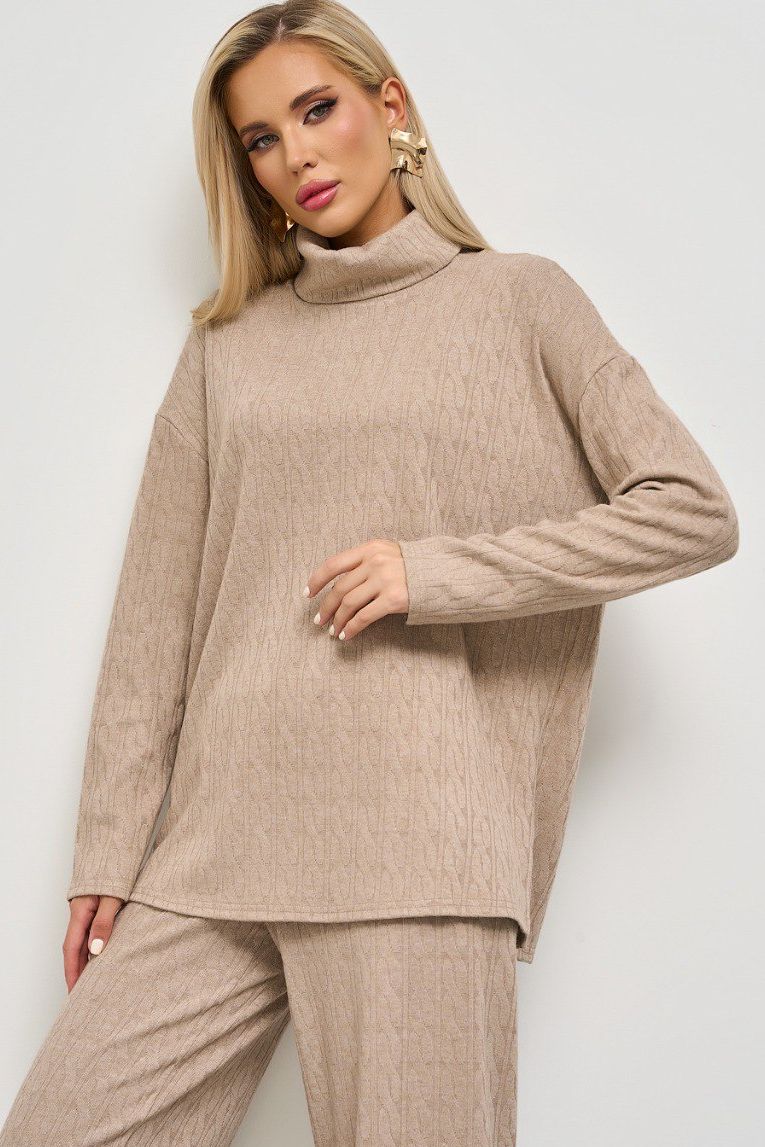 Джемпер бежевый свободный с разрезами по бокам