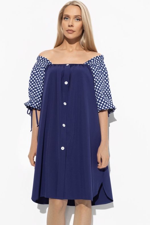 Платье синее в горох