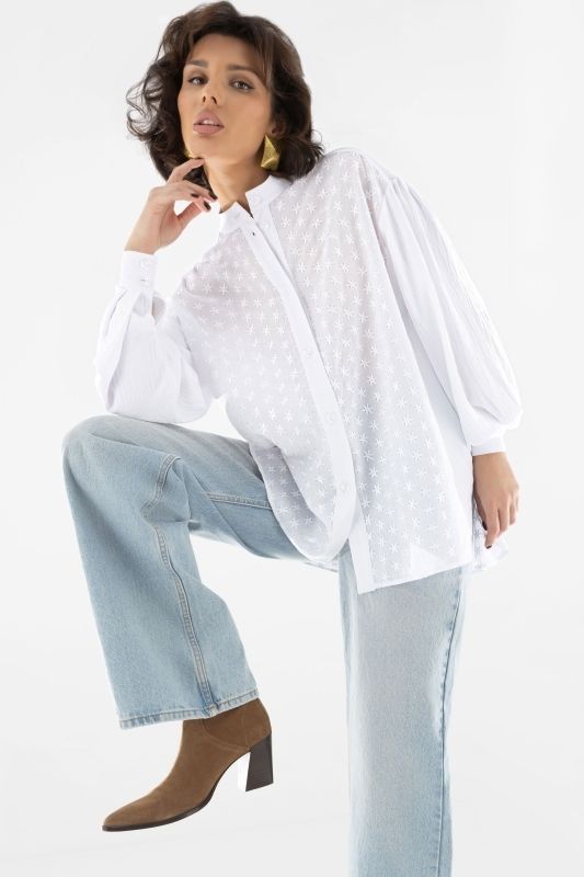 Блузка розовато-серого цвета с цельнокроеным рукавом