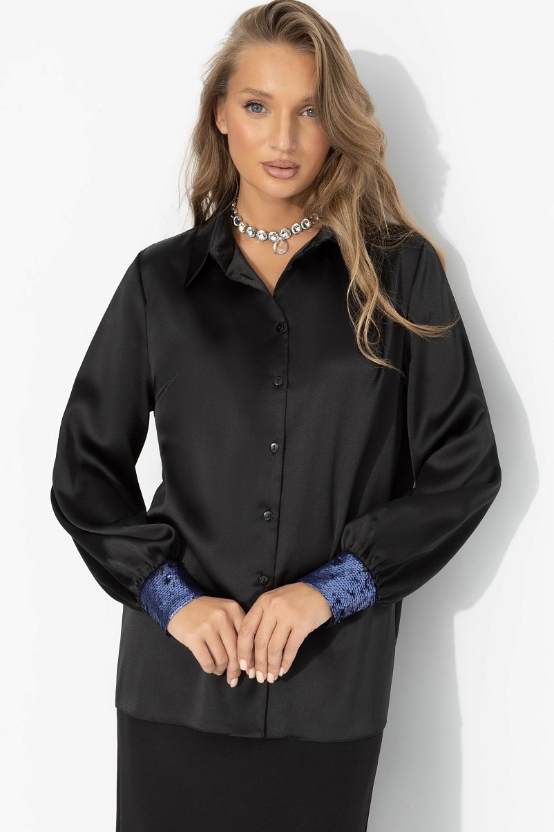 Рубашка голубая с ассиметричной драпировкой и кружевом