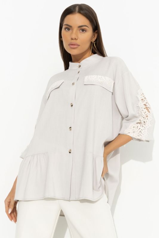 Рубашка серая с вставками из кружева