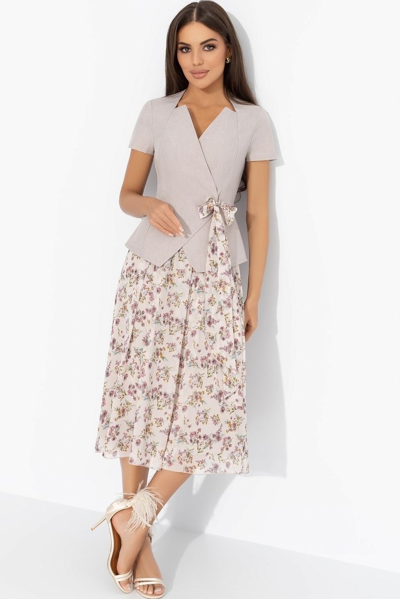 Костюм бежевый с юбкой из шифона