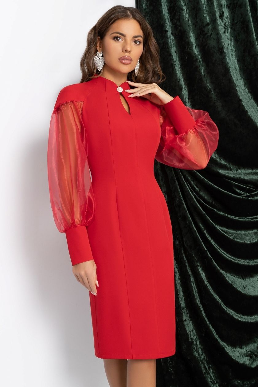 Блузка тёмно-красного цвета с воротником из шифона с принтом