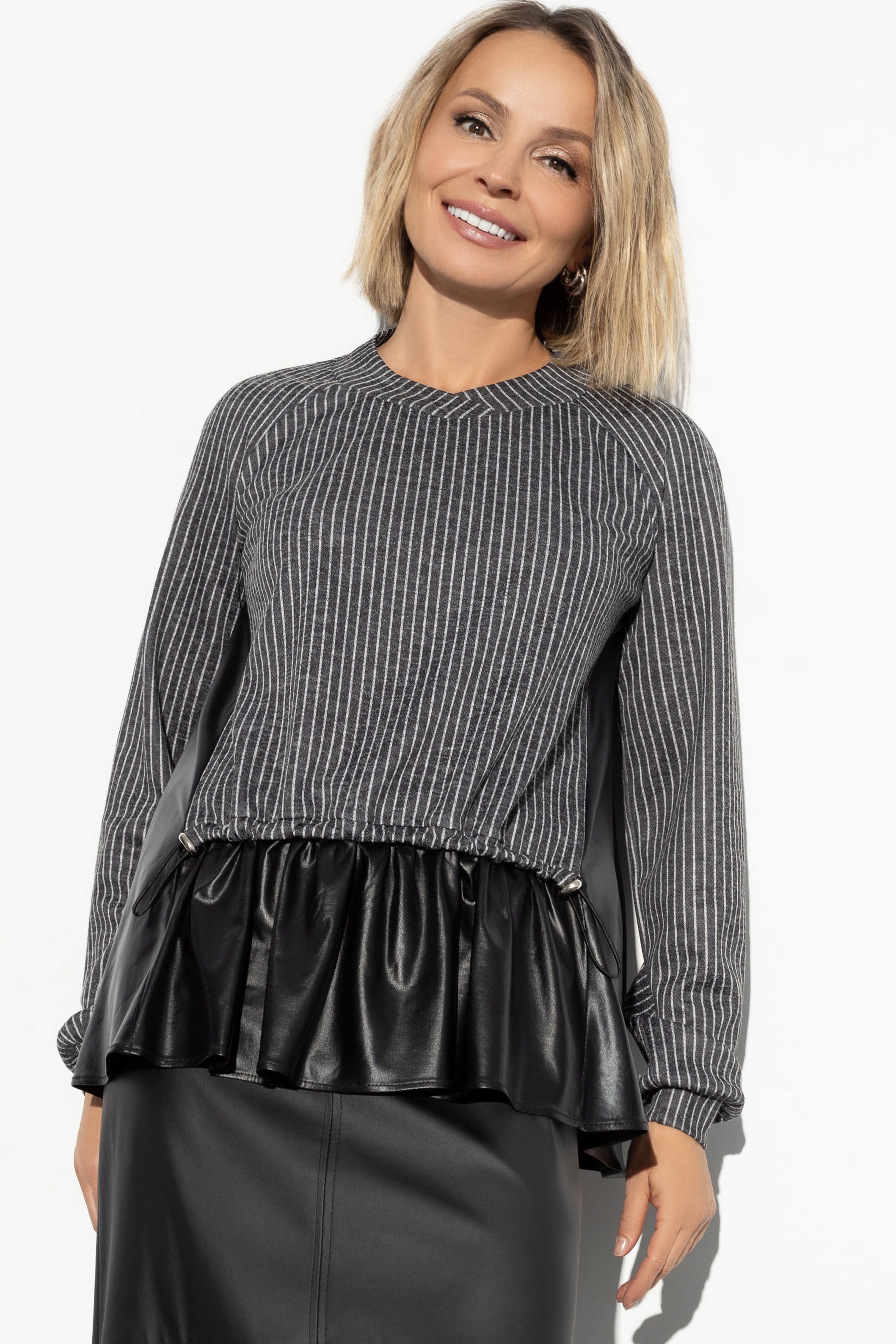 Блузка чёрная с пышными рукавами и воротником стойка Шарлиз, шик нью