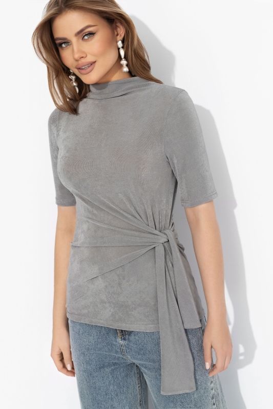 Блузка серая трикотажная с декоративным узлом