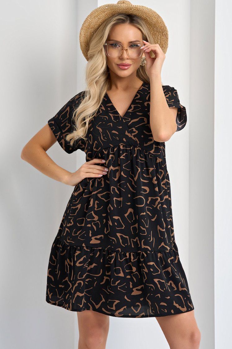 Шифоновое тёмно-зелёное платье с пуговицами и принтом